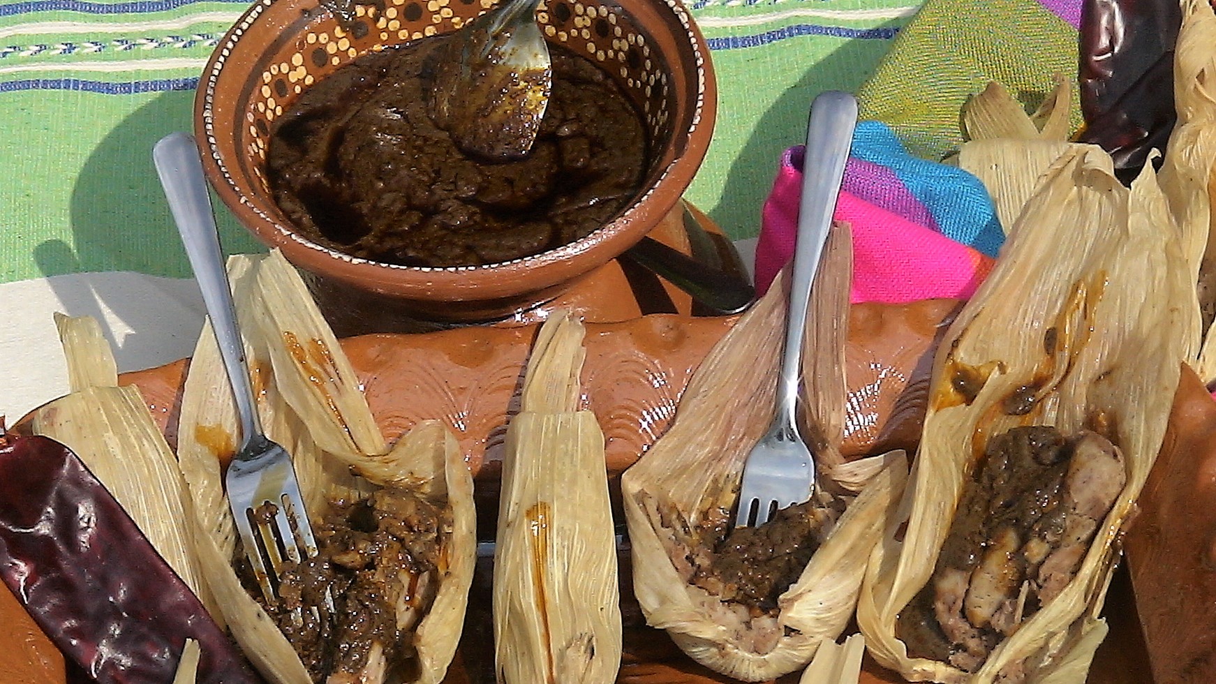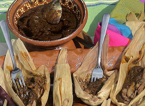 - Tamalitos de frijol en hoja de maíz bañados de mole rojo, los preferidos.